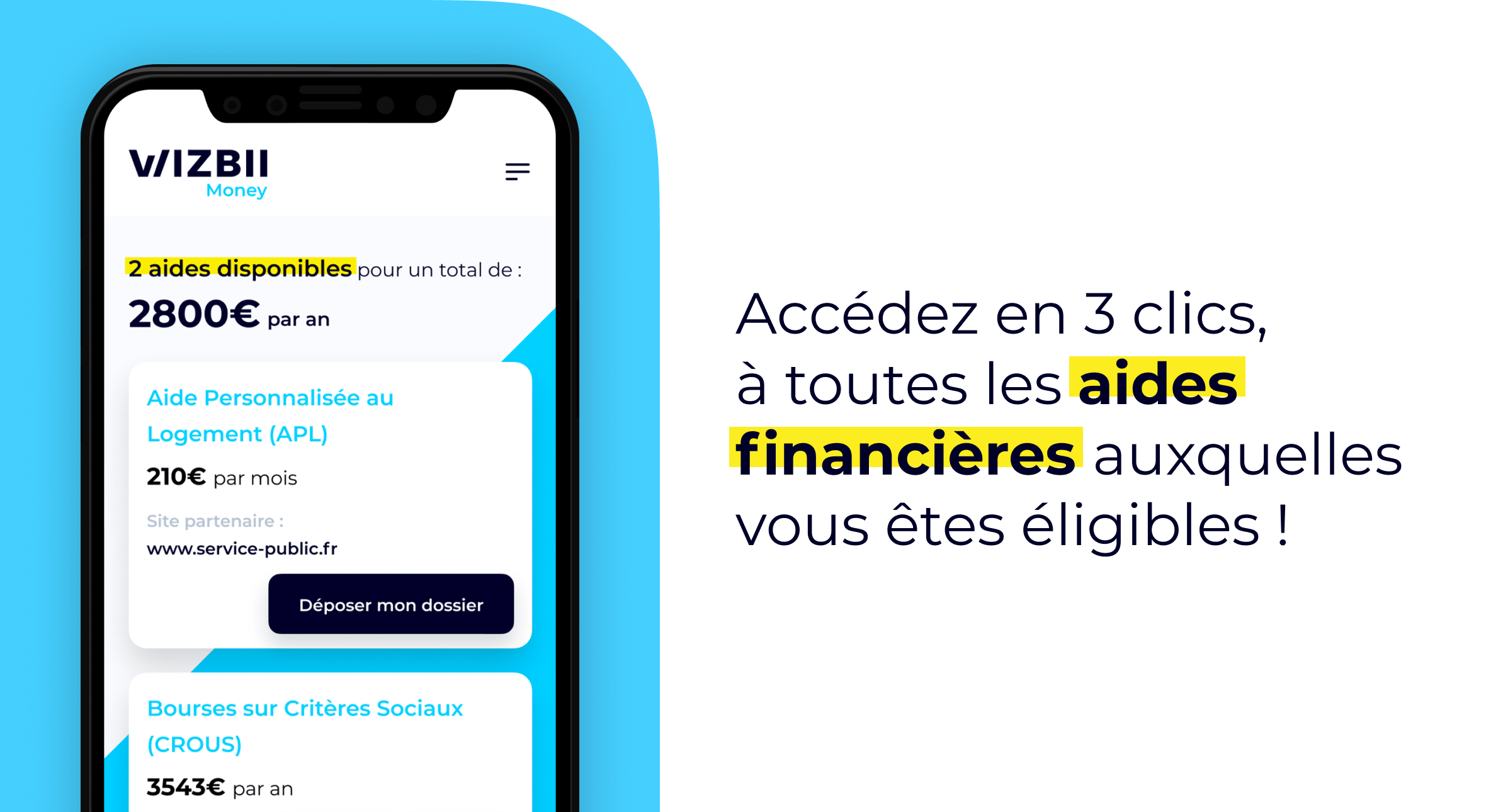 7. Renseignez-vous sur les aides financières auxquelles vous avez droit en tant qu’étudiant. Cela devrait vous aider à mieux vous y retrouver financièrement. Le site Wizbii Money (anciennement Fibii) est fait pour ça ! En un coup d’oeil vous allez pouvoir repérer les aides auxquelles vous pouvez prétendre en matière de logement, financement de vos études ou même mutuelle santé. Wizbii Money vous renseigne aussi bien sur les aides étudiantes régionales que nationales. Cliquez-ici pour en savoir plus sur vos droits.