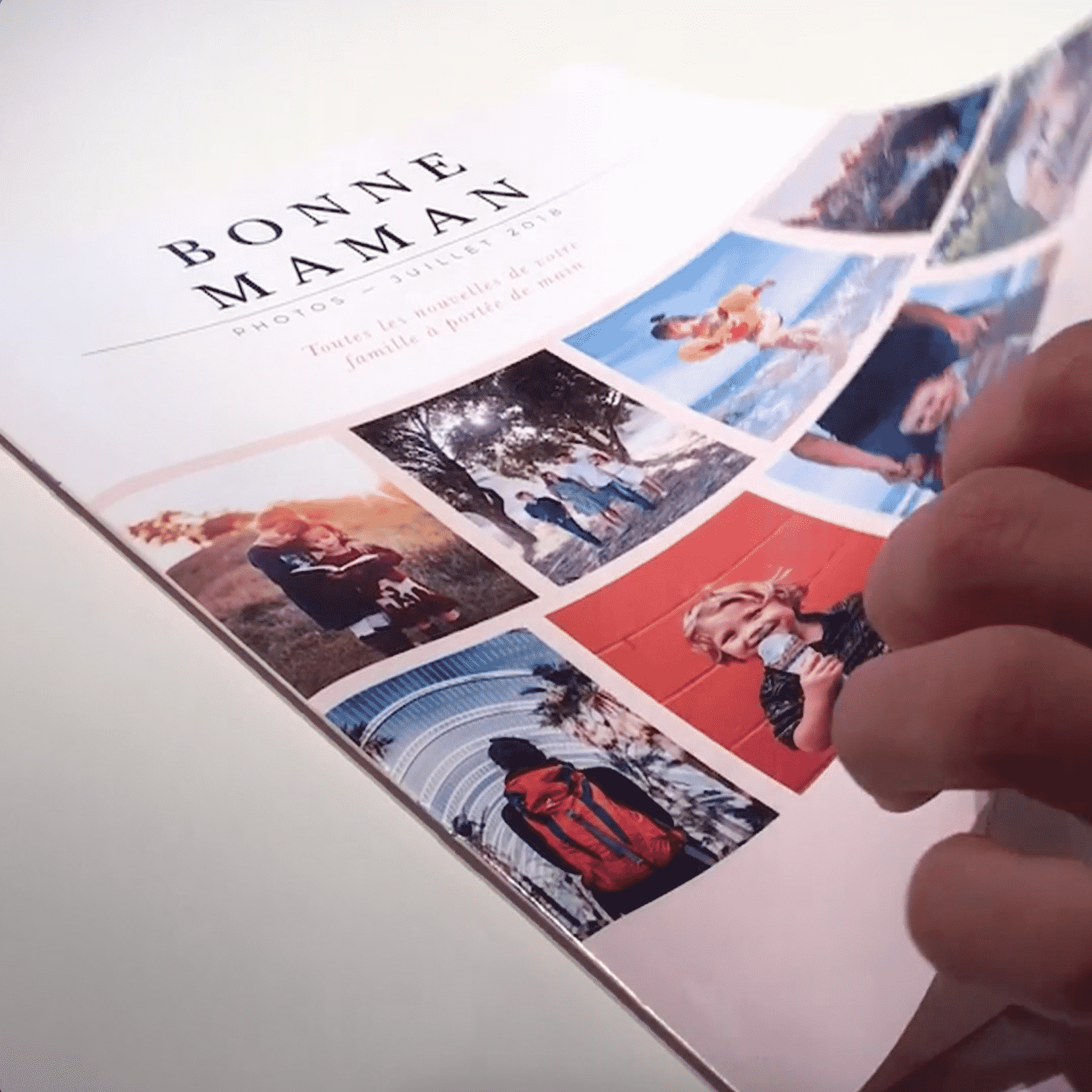 Votre grand-mère ou grand-père recevra chaque mois pendant un an un journal sur papier brillant avec 50 photos de tous les gens qui comptent pour elle ou pour lui. Chaque page contient 3 photos à coté desquelles on peut mettre un commentaire jusqu’à 200 caractère.